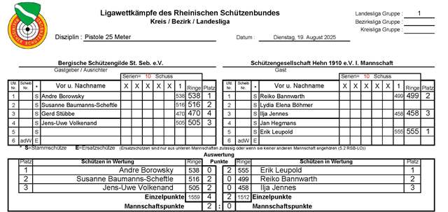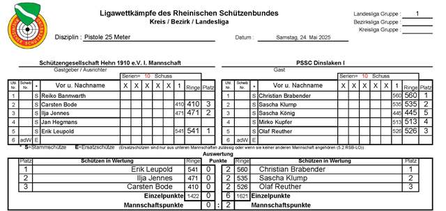 - Schützengesellschaft Hehn 1910 e.V. I – PSSC Dinslaken I