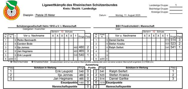 - Schützengesellschaft Hehn 1910 e.V. I – BSV Friedrichsfeld I