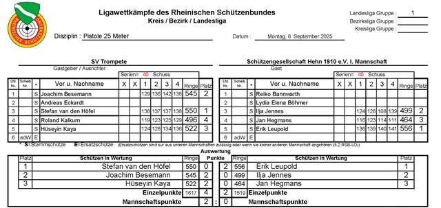 - SV Trompete Leichlingen – Schützengesellschaft Hehn 1910 e.V. I