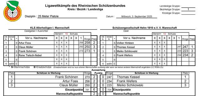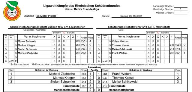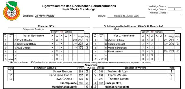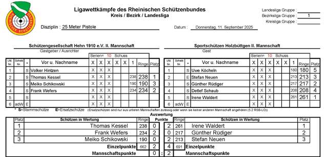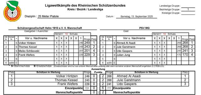 - Schützengesellschaft Hehn 1910 e.V. II – PSV Mönchengladbach I