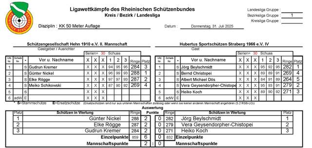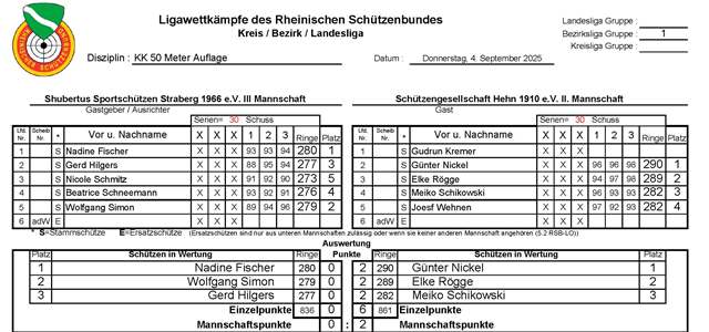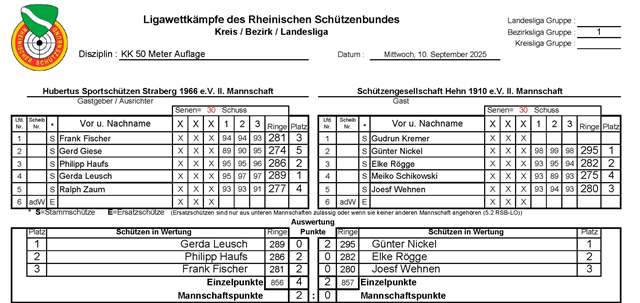 • Schützengesellschaft Hehn 1910 e.V. II – Hubertus SpSch Straberg IV