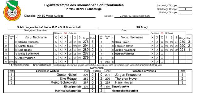 • Schützengesellschaft Hehn 1910 e.V. II – BSV Dormagen