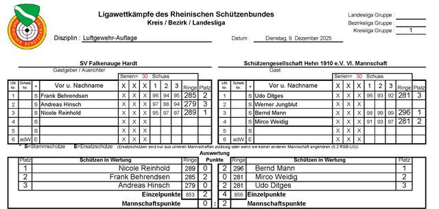 - SV Falkenauge Hardt – Schützengesellschaft Hehn 1910 e.V. VI