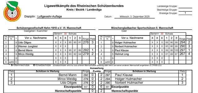 - Schützengesellschaft Hehn 1910 e.V. VI – Mönchengladbacher Sportschützen II