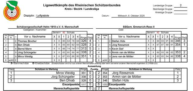 - Schützengesellschaft Hehn 1910 e.V. II – PSSC Dinslaken II