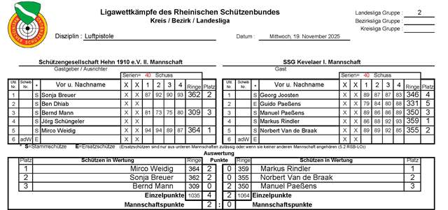 - SV Trompete Leichlingen I – Schützengesellschaft Hehn 1910 e.V. II