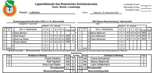 • Schützengesellschaft Hehn 1910 e.V. III – SSV Reuschenberg I